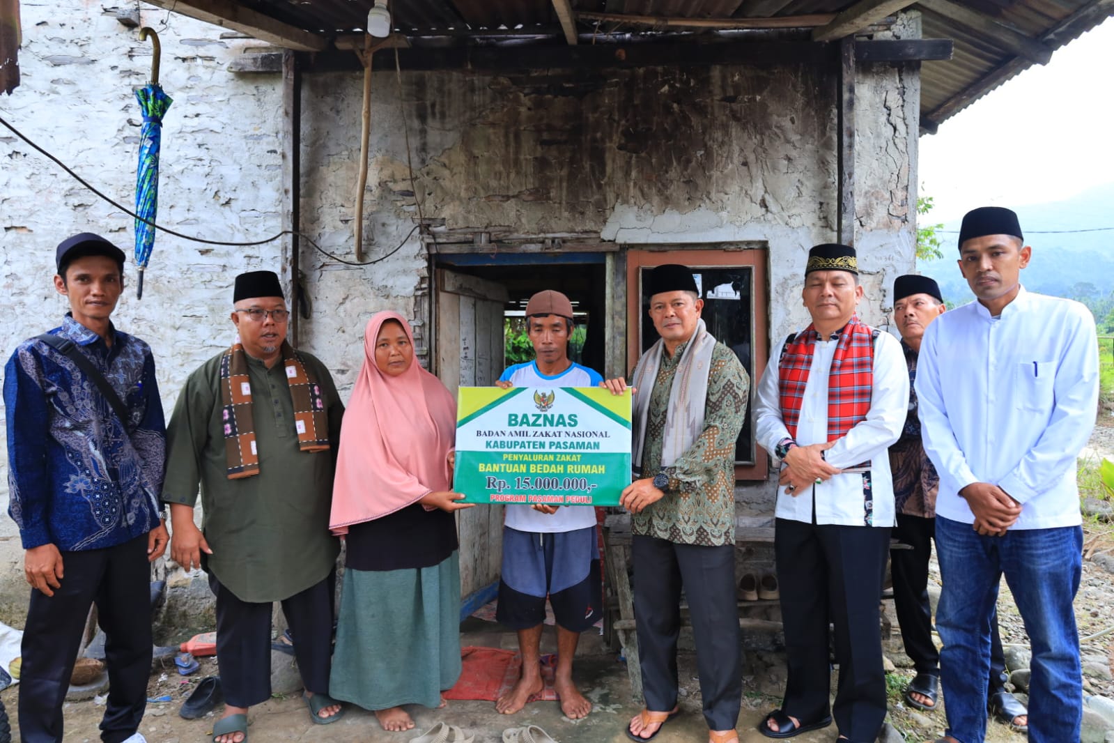 Selain itu, Bupati dan rombongan juga menyerahkan bantuan rumah layak huni kepada salah seorang penerima manfaat warga salareh aia.