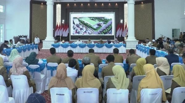 Rapat dihadiri Sekretaris Daerah, jajaran SKPD, perwakilan Kementerian Agama, Ketua GOW, serta panitia pelaksana.