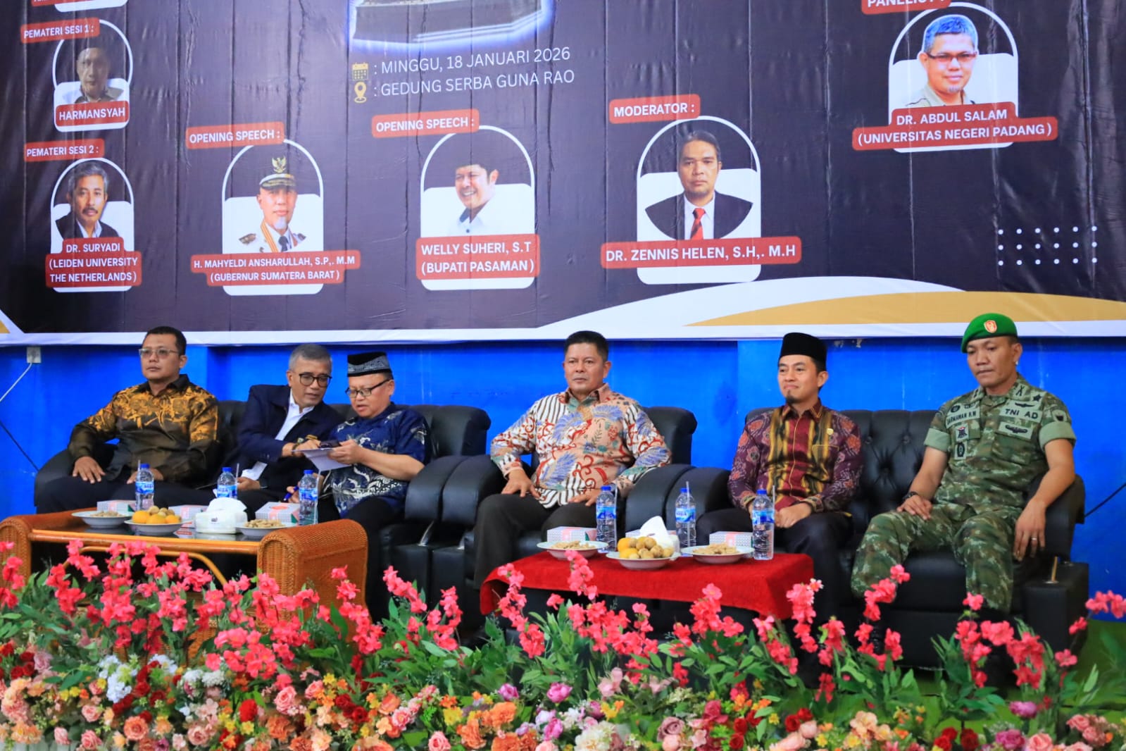 Seminar nasional tersebut diisi oleh narasumber berasal dari akademisi dan birokrasi. Mereka antara lain Ir. Azhari Rahman, MTS., Amran Dt. Jo Rajo, S.Pd., M.Pd., Harmansyah, Dr. Suryadi (Leiden University, Belanda), Prof. Dr. Gusti Asnan (Unand), Dr. Abdul Salam (UNP) dan moderator Dr. Zenis Helen, SH.,MH. ( Sol )