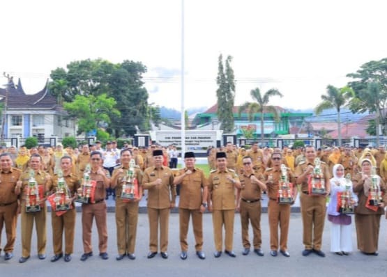 Bertempat di halaman Kantor Bupati Pasaman, saat apel pagi gabungan, senin (8/12/2025) dilakukan pengumuman penilaian terhadap pelayanan publik sejumlah instansi dilingkungan Pemkab Pasaman.