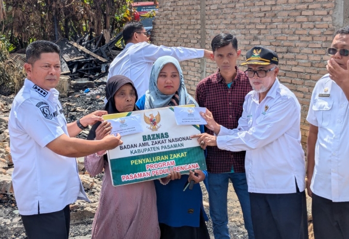 Dimana, sebagai bentuk meringankan beban korban, BAZNAS Kabupaten Pasaman menyalurkan bantuan uang tunai sebesar Rp10 juta yang dibagi masing-masing Rp5 juta per rumah. Selain itu, Dinas Sosial menyerahkan bantuan logistik berupa beras 40 kg, makanan siap saji, perlengkapan tidur, serta kebutuhan sandang. BPBD Pasaman juga turut memberikan paket hygiene kit, tikar, serta bahan pangan tambahan bagi para korban.