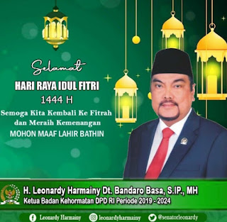 “Selamat Hari Raya Idul Fitri bagi yang merayakan. Bagi wisatawan, selamat liburan. Mari kita jaga kebersamaan dan persaudaraan untuk menjadi manusia yang lebih baik lagi,” Ujar H. Leonardy Harmainy (RD)