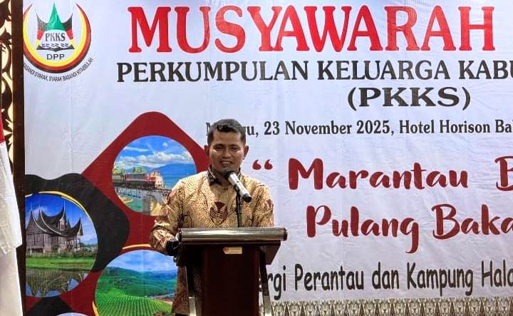 Kabupaten Solok, zaman.co.id – Bupati Solok, Jon Firman Pandu, SH menghadiri Musyawarah Besar (Mubes) Perkumpulan Keluarga Kabupaten Solok (PKKS) yang bertemakan, “Marantau Bakato Adat, Pulang Bakato Nagari. Sinergi Perantau dan Kampung Halaman Membangun Solok Gemilang”, Minggu (23/11/2025) di Pagaruyung Ballroom lt.3, Hotel Horison Balairung Jakarta.