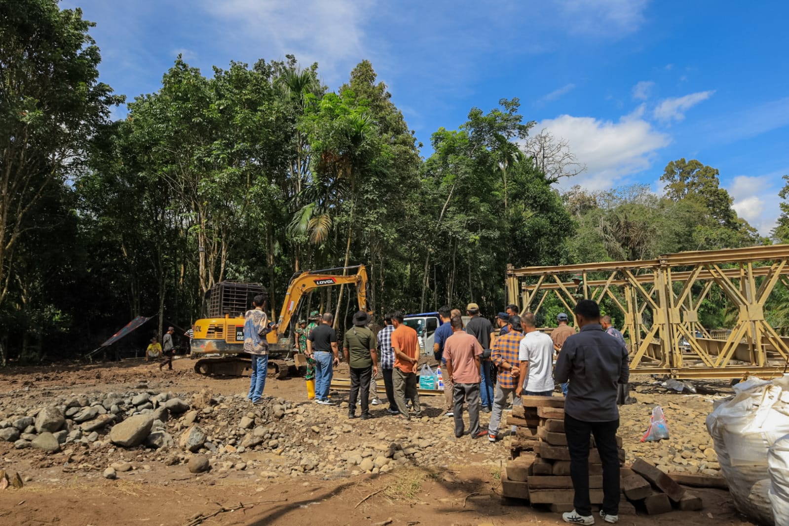 Didapat informasi dari pihak pelaksana, bahwa saat ini progress pemasangan jembatan bailey sudah mencapai diatas 50% dan ditargetkan selesai sampai akhir bulan ini. Dalam hal ini Bupati berharap agar pengerjaan jembatan berjalan dgn baik dan lancar sehingga masyarakat bisa segera memanfaatkannya.