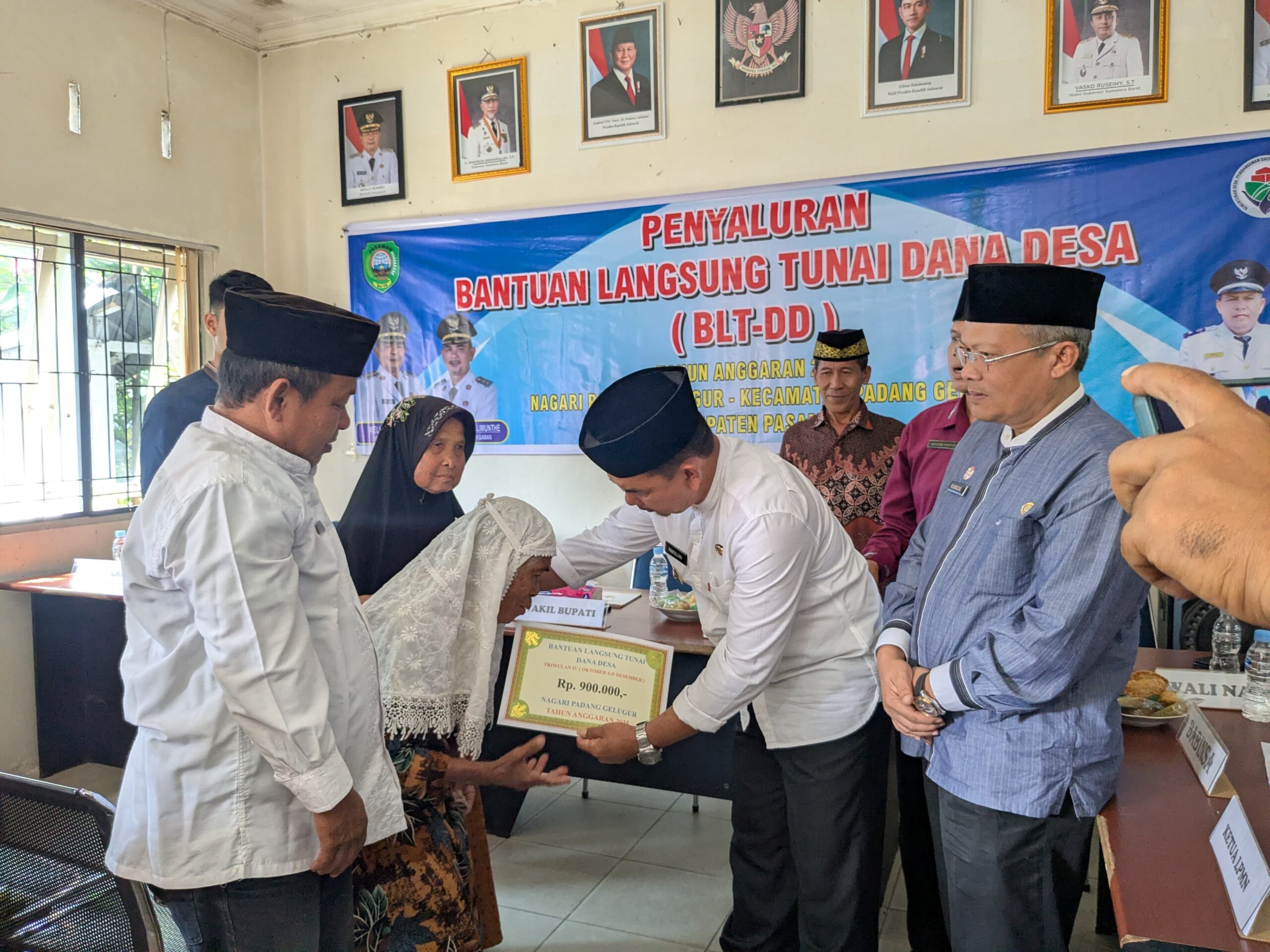 Waktu itu, Wali Nagari Padang Gelugur Kecamatan Padang Gelugur, mengatakan, Untuk penerima Bantuan Langsung Tunai dana desa, yang diambil dari anggaran nagari untuk triwulan ke 4 sebanyak 75 KPM, masing masing mendapatkan 900 ribu rupiah, perbulan mendapatkan 300 ribu rupiah kali 3 bulan, jelasnya.