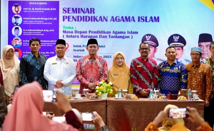 Kabupaten Solok, zaman.co.id – Pemerintah Kabupaten Solok terus memberikan dukungan terhadap penguatan Pendidikan Agama Islam. Hal ini ditunjukkan dengan kehadiran langsung Bupati Solok, Jon Firman Pandu, SH yang membuka secara resmi Seminar Pendidikan Agama Islam bertema “Antara Harapan dan Tantangan”, Selasa (26/08/2025) di Solok Premiere Hotel.